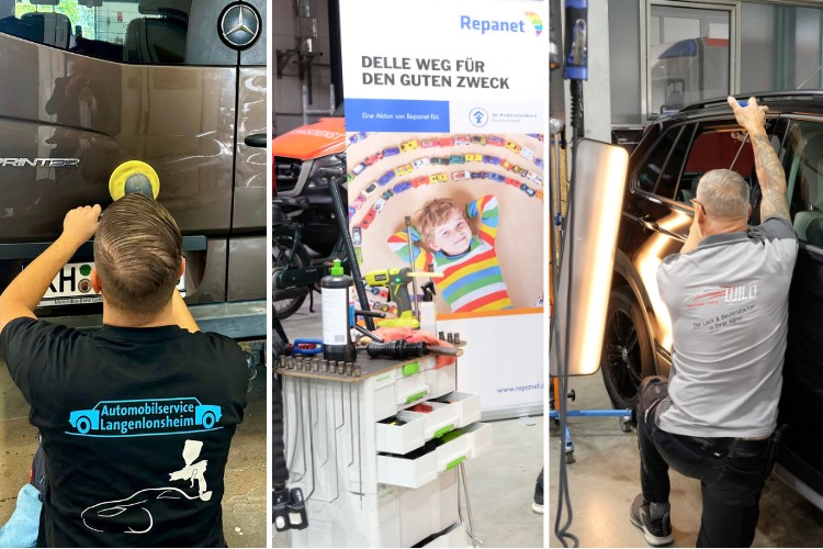 Nachdem der erste Aktionstag von „Delle weg für den guten Zweck“ bereits ein voller Erfolg war (wir berichteten), sorgte auch der zweite Termin für viele zufriedene Gesichter. Am 30. September öffneten nochmals drei Repanet-Betriebe ihre Tore, um sich ausschließlich kleinen Fahrzeugkratzern und Beulen zu widmen. Dabei sind noch einmal 4.920 Euro zusammengekommen. Zusammen mit dem Repanet Mitglied Konowski, der im Oktober den Aktionstag ausrichtete, summierte sich die Gesamtspende im Jahr 2023 auf insgesamt 14.117 Euro. Die Einnahmen wurden unmittelbar an die jeweiligen Orts- und Kreisverbände des Kinderschutzbundes weitergeleitet.